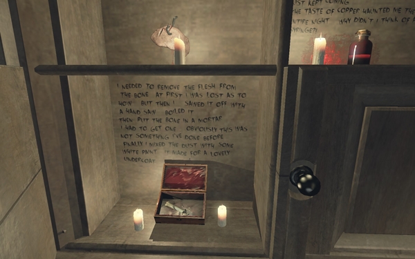 就是上圖右後方的櫃子,結束這個半完成版時只能取得四件物件。分別是: